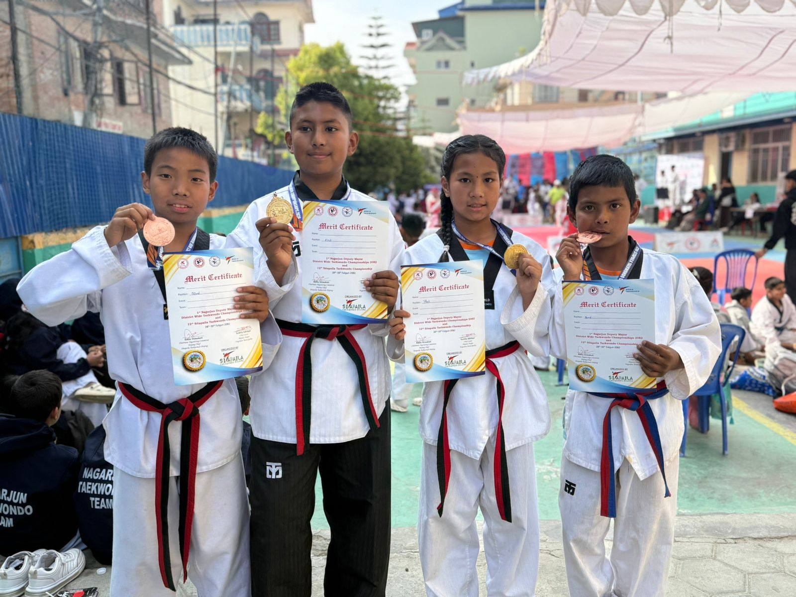 Jaishideval Taekwondo Dojang is proud to announce that in the "First Nagarjun Deputy Mayor District-Level Taekwondo Competition 2082" organized by Sitapaila Taekwondo Dojang, 7 athletes from our dojang participated in the Poomsae event and achieved remarkable success.